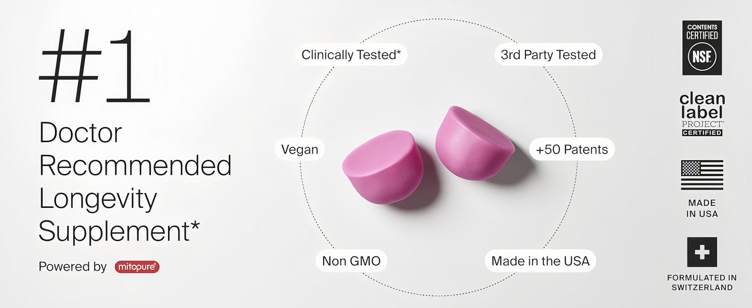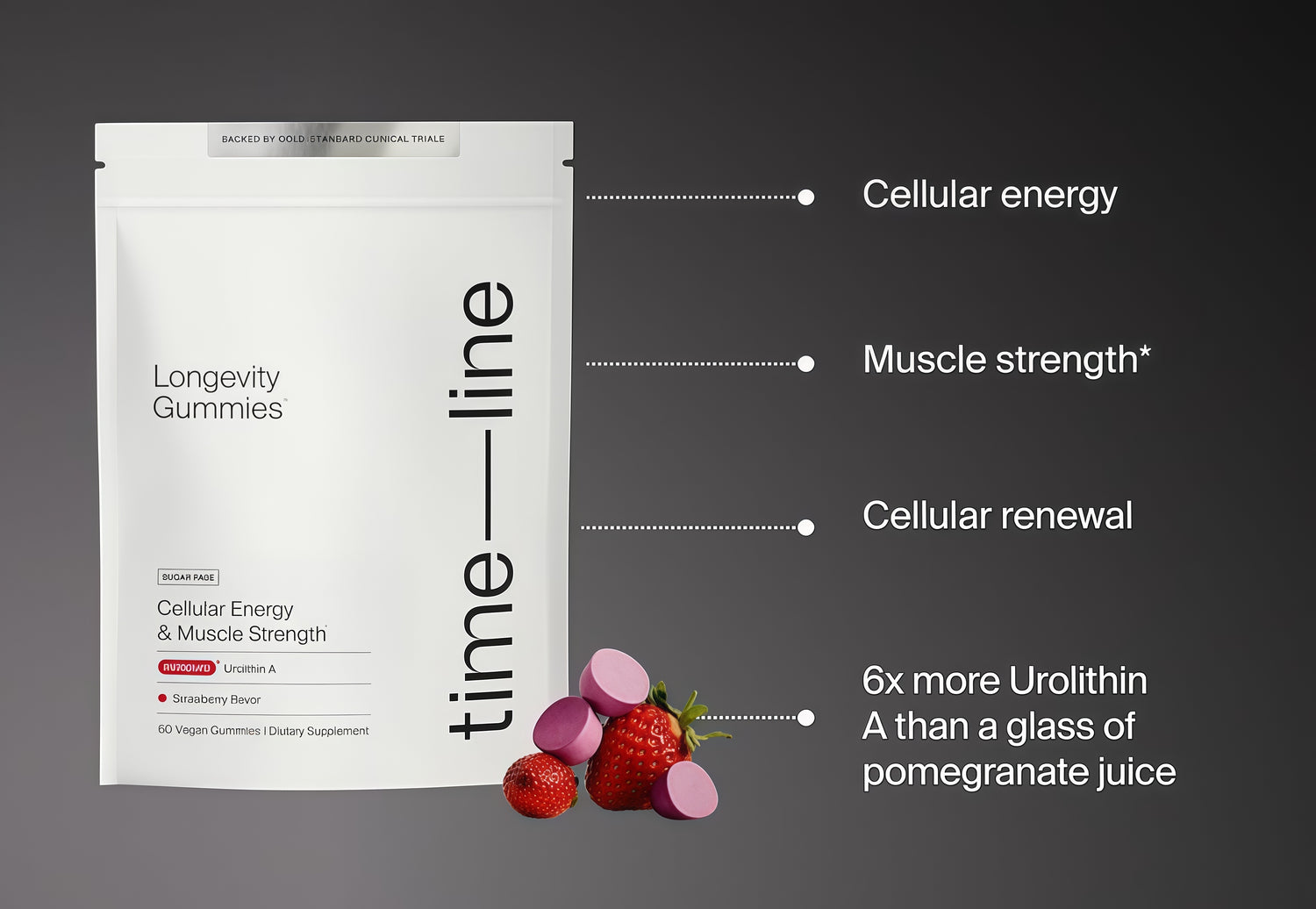 Take two gummies daily for the recommended dose of Urolithin A (500mg of Mitopure).